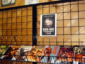 February 2008, Mark Millar and John Romita Jr. partnered for a creator owned comic from publisher Icon (Marvel subsidiary) called Kick-Ass. This series was based on the idea of what if in the real world someone put on a costume and tried to be a real superhero. This is definitely an 18+ book. As the series was going, Hollywood took notice and signed on to do a movie of it. If you have ever watched the movie and read the comic you will probably notice the first half of the movie is very similar to the comic, but the back half is very different. This is because the comic wasn't finished by the time filming had begun and the screenplay writers had to make up their own ending. I mention this title as it was a big seller for us here at Chimp's and Mark Millar did something awesome for advertising it. He had a contest on his forums where if you had a comic store and took pictures of flyers you hung up around your store, you would get listed in the back of the book. I of course had to take advantage of this. Take a look at your issues of Kick-Ass in the back. I'll wait.